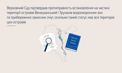 Верховний Суд підтвердив протиправність встановлення на частині території островів Венеціанський і Труханів водоохоронних зон та прибережних захисних смуг, оскільки такий статус має вся територія цих островів