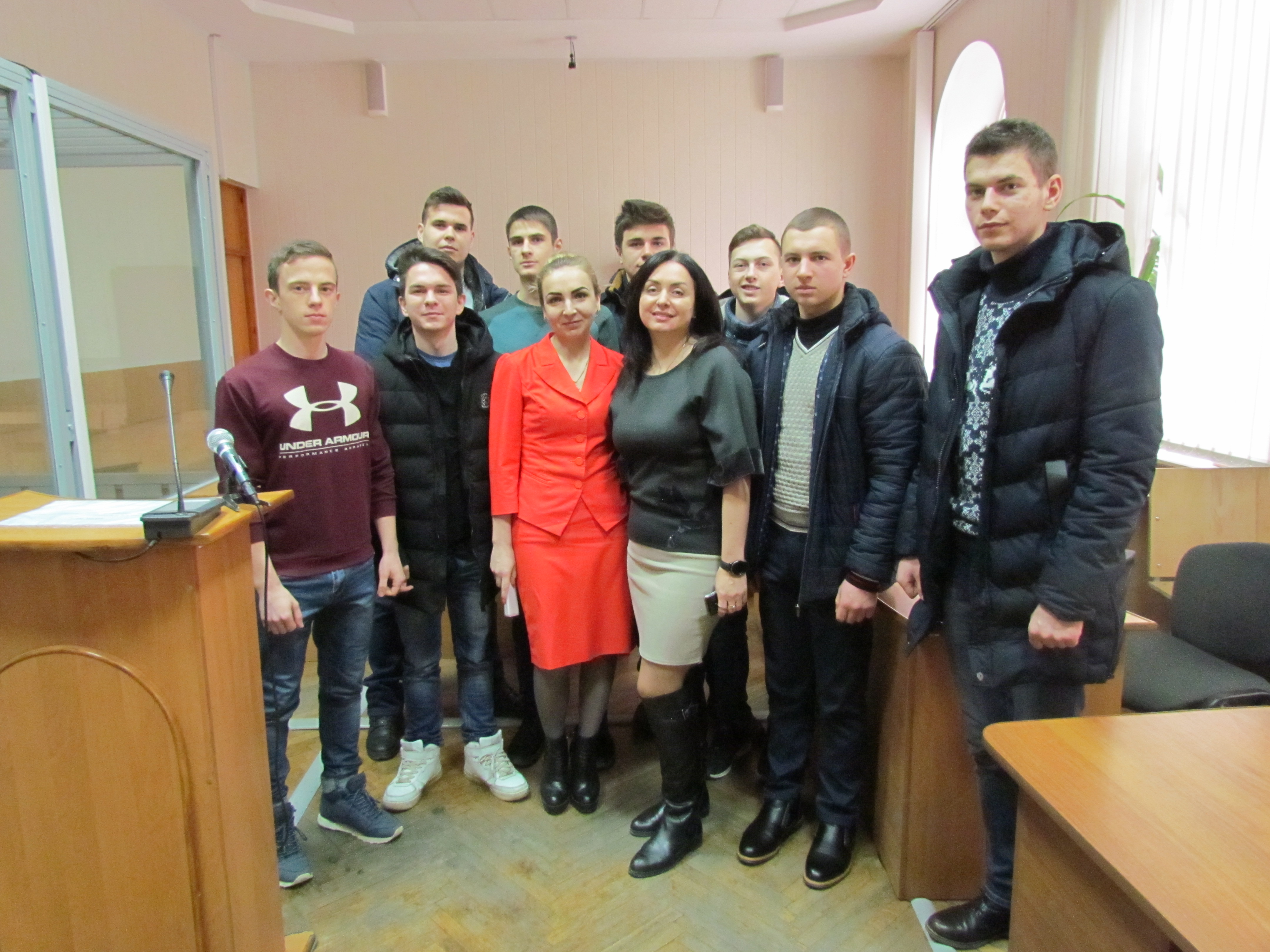 Найцікавішим моментом для майбутніх правників в межах організованого заходу стало відвідання чотирьох судових засідань, в яких розглядались адміністративний матеріал відносно неповнолітньої особи та обвинувальні акти у кримінальних провадженнях щодо осіб, які підозрюються у вчиненні кримінальних правопорушень, передбачених ст. ст. 185 (крадіжка), 190 (шахрайство), 289 (незаконне заволодіння транспортним засобом) КК України. Таку можливість для студентів надав суддя Руслан Каленяк до компетенції якого віднесено розгляд кримінальних проваджень. Крім того, Руслан Анатолійович поділився із першокурсниками власним досвідом розгляду резонансних справ, розповів про зміни в чинному законодавстві та те, як вони впливають на роботу судді. Наприкінці розмови суддя закликав студентів ретельно вивчати та неухильно дотримуватися законів, адже в сучасному світі це необхідність для кожної свідомої людини, а для майбутніх служителів Феміди – особливо.