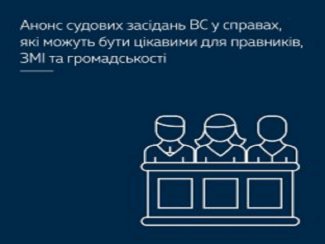 Анонс засідань Верховного Суду у справах, які можуть бути цікавими для правників, ЗМІ та громадськості