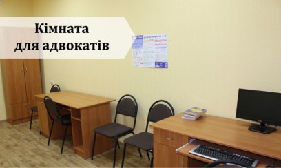 Кімната для адвокатів знаходиться на першому поверсі у кабінеті № 108 та доступна для користування упродовж всього робочого дня.